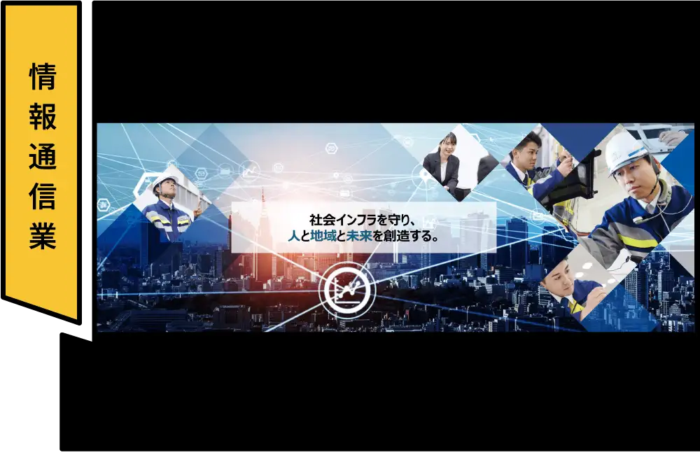 地域社会の快適な通信環境を実現するため、通信設備の設計・保守やICT環境の構築、災害復旧、訪問・遠隔サポートで地域の通信インフラを支えています。