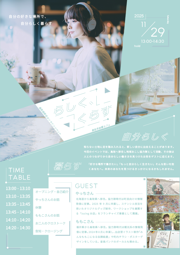 本イベントでは、鳥取県と岡山県で暮らす先輩移住者をゲストにお呼びして、