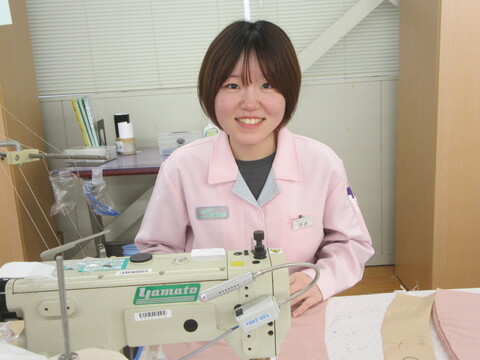 縫製を担当しています。日々改善することが多く大変なこともありますが、先輩からほめられると成長と喜びを感じます。私はショーツを10人程のメンバーで縫っています。完成した製品を見たとき「この部分を自分が縫った」という達成感があります。ショーツと一口に言っても色々な縫い方があるので、そこが面白いと感じています。