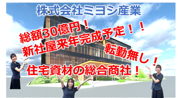 個人大工さんから建築会社まで約30社を担当しています。会社ごとで営業の流れが異なります。入社1〜2年目は、建築資材の製品情報の共有などでミスもあり、小さなことでも確認することの大切さを学びました。担当先から「次もミヨシ産業に頼もう」と思っていただけるように、受け身ではなくお客様のお役に立てるようにプラスアルファの提案を心がけ、頼られる存在を目指しています。