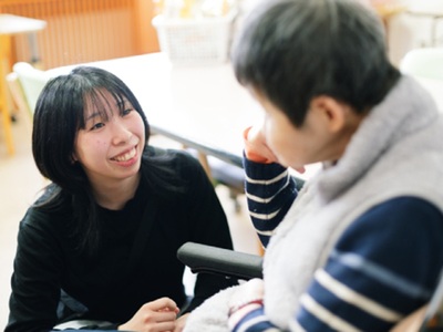 私は、利用者さん一人ひとりに合った方法で関わることを意識しています。その中で利用者さんの体調の変化や出来るようになったことなど、日々の小さな変化に気づくことが出来た時にやりがいを感じます。また、休日は旅行や好きなアーティストのライブに行き、プライベートも充実することが出来る環境も、仕事に対するモチベーションUPにつながっています。